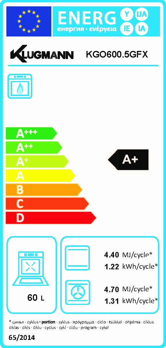 Klugmann Design KGO600.5GFX 60cm Einbau-Gas-Backofen Edelstahl 60 L mit Teleskopauszug