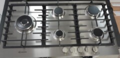 Backofen-Set Teleskopauszug, 3-fach Verglasung, 70L, Edelstahl Gaskochfeld 4 Brenner und WOK Brenner.